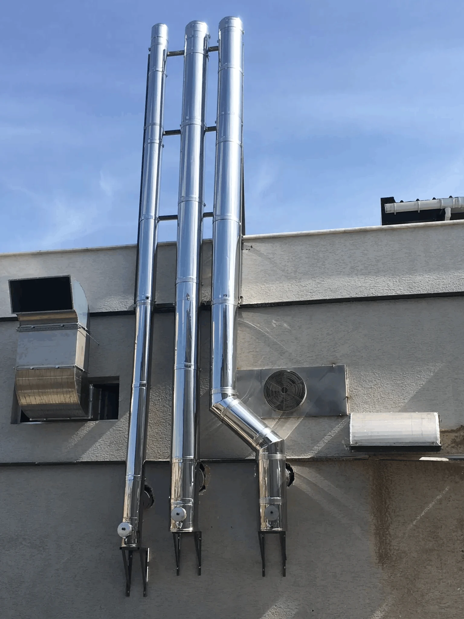 Apartman ve müstakil konutlar için doğalgaz, katı yakıt ve kombi bacaları tasarlıyor ve uyguluyoruz.